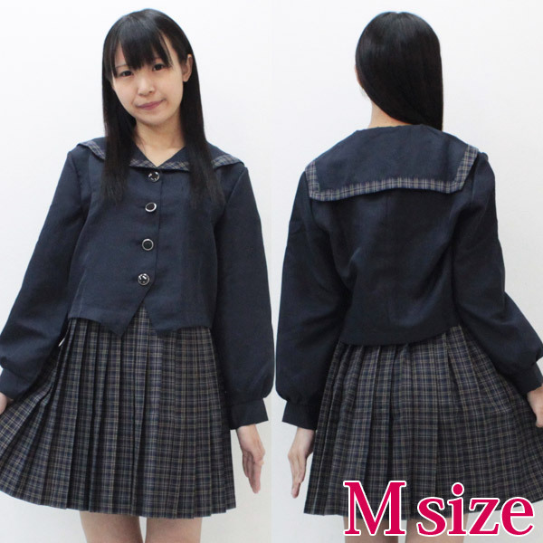 デザイン性バツグン!オシャレな紺チェック柄の冬制服コスプレ(Mサイズ)。