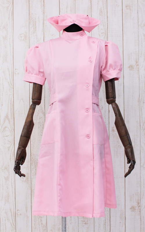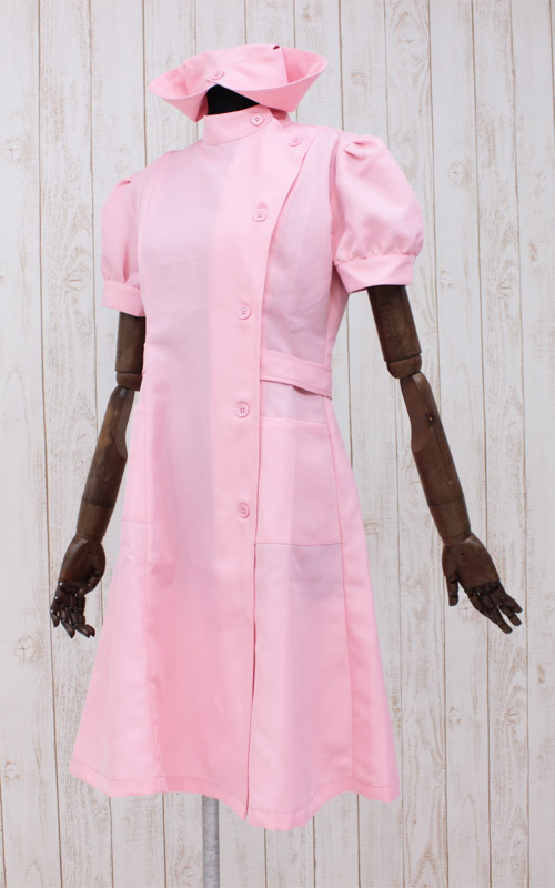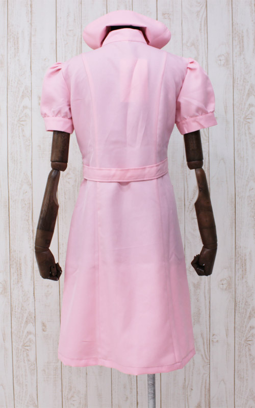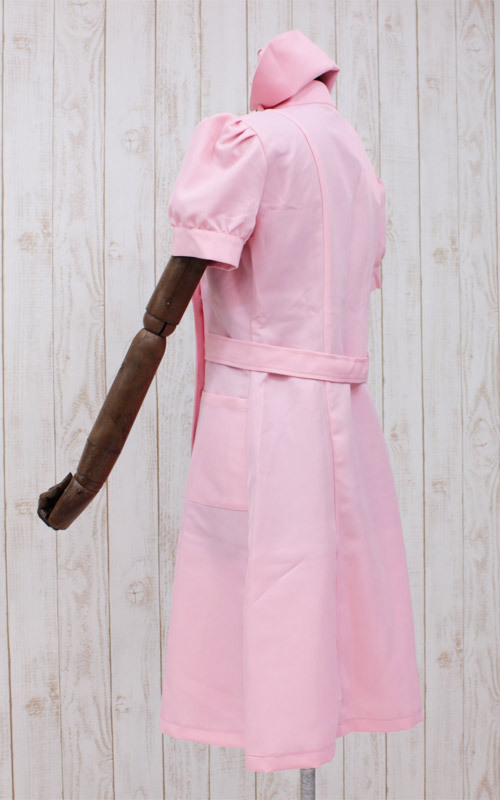 ボリュームのある半袖パフスリーブがキュート!女装に最適なBIGサイズの桃色ナース服セット。