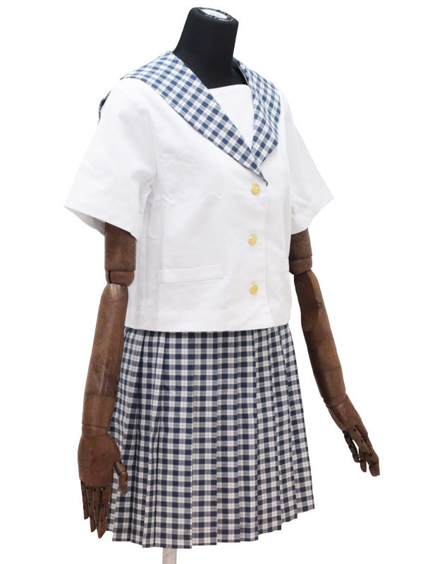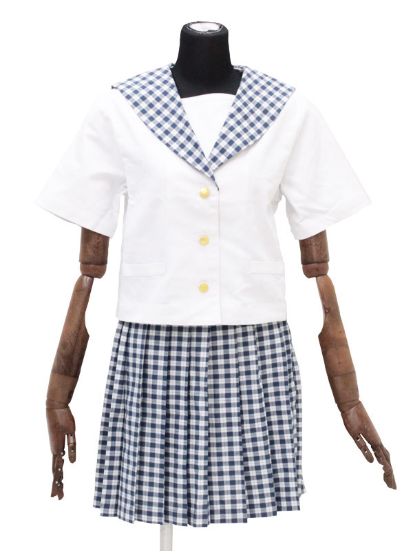 ギンガム風のチェックが爽やか!上品なムードをかもし出すセーラー服コスチューム。