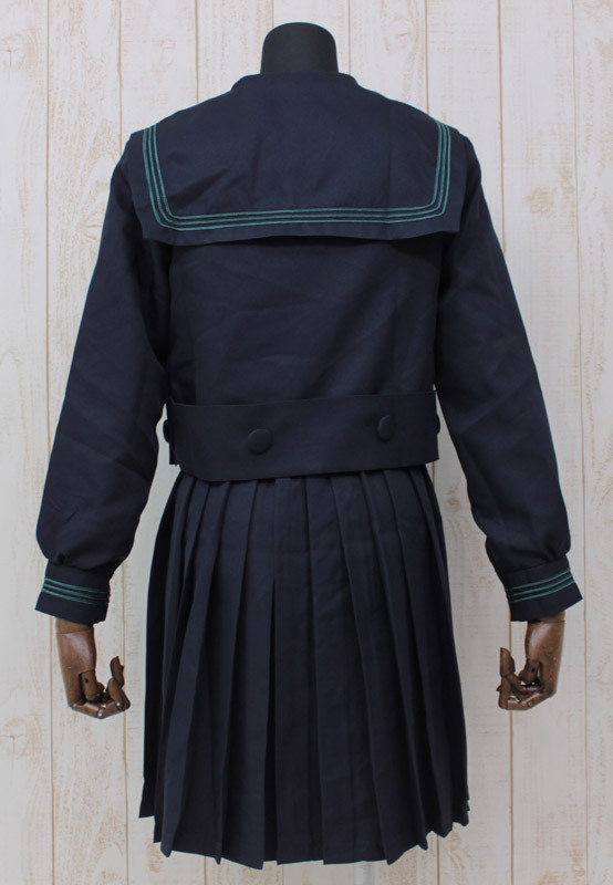 ●長袖セーラーブラウスの裾は折り返し仕様●スカーフは縫いつけ(取り外し不可)●定番の紺色プリーツスカート。