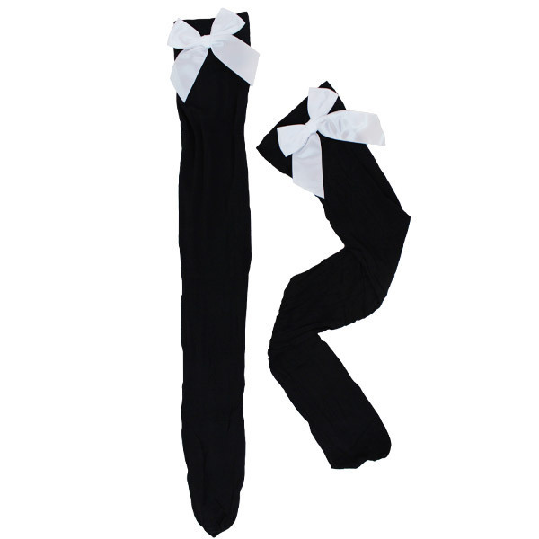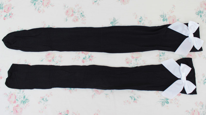リボン付きニーハイ 黒×白リボン