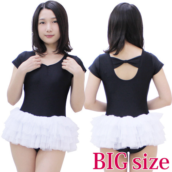 | ■サイズ/ セット内容 | BIGサイズ:B66〜106cm・W62〜98cm・H70〜108cm・着丈57cm・袖丈11.5cm・スカート丈18cm セット内容:レオタード単品(一部当て布付き) 素材:ポリエステル、ポリウレタン、チュール | ||