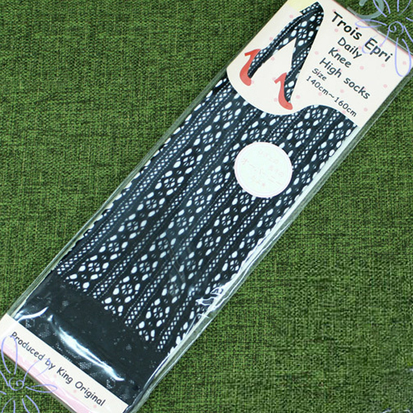 【在庫限り!大特価】嬉しいプチプラ価格♪履き心地抜群なTrois Epri(トロアエプリ)のレース付き花柄メッシュニーハイソックス。
