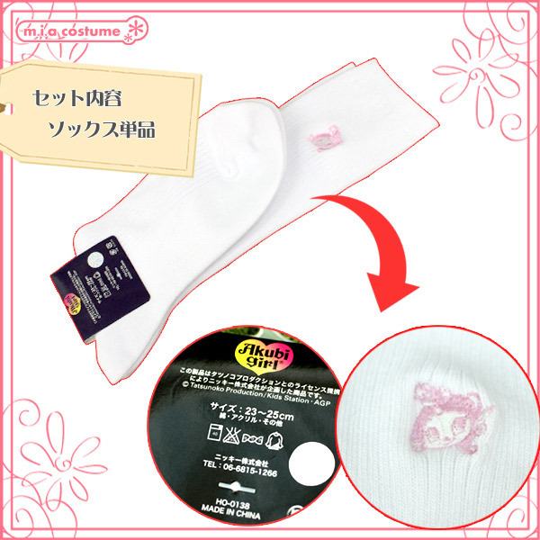【在庫限り!大特価】嬉しいプチプラ価格♪大人気「アクビちゃん」のワンポイント刺繍入りソックス。