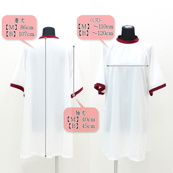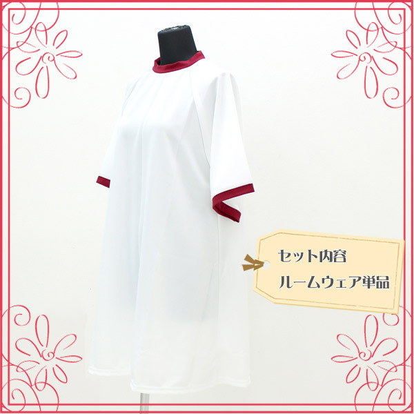 | ■サイズ/ セット内容 | Mサイズ:B〜110cm 着丈86cm 袖丈40cm 素材:ポリエステル65%、コットン35% 体操着ルームウェア 色:エンジ | ||