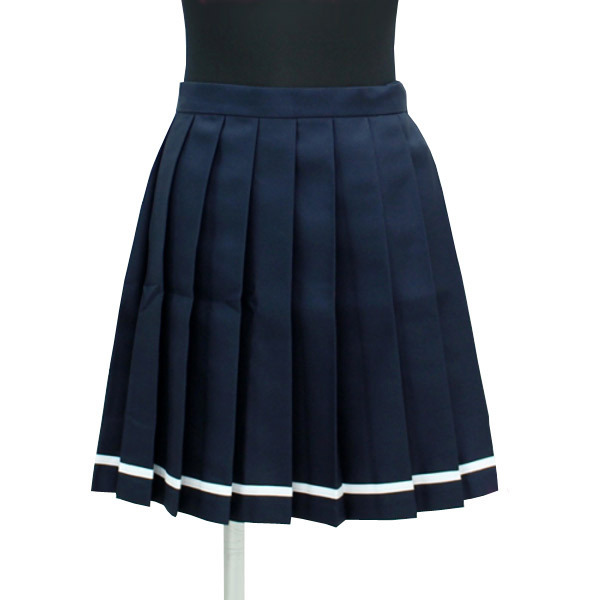 | ■サイズ/ セット内容 | Mサイズ:W66〜72cm スカート丈45cm セット内容:スカート単品(横ファスナー、アジャスター調節可) 素材:ポリエストル100% 無地プリーツスカート単品 色:紺×白ライン | ||