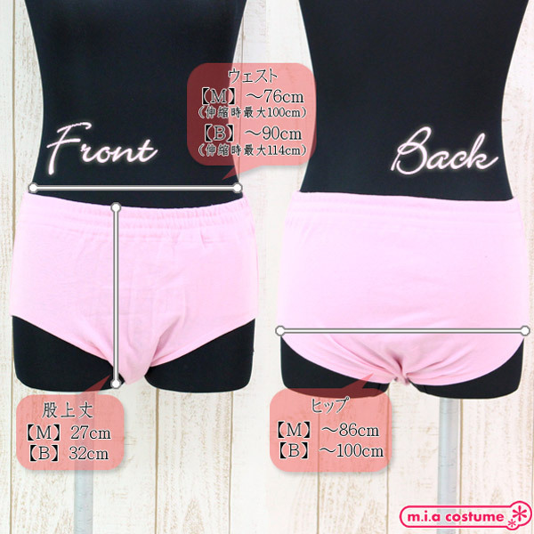 | ■サイズ/ セット内容 | Mサイズ W〜76cm(伸縮時最大100cm)・H〜86cm ブルマ:股上丈27cm セット内容:ブルマ単品 素材:ポリエステル65%、コットン35% | ||