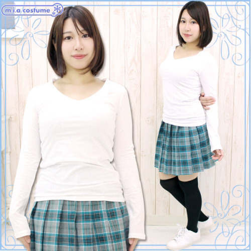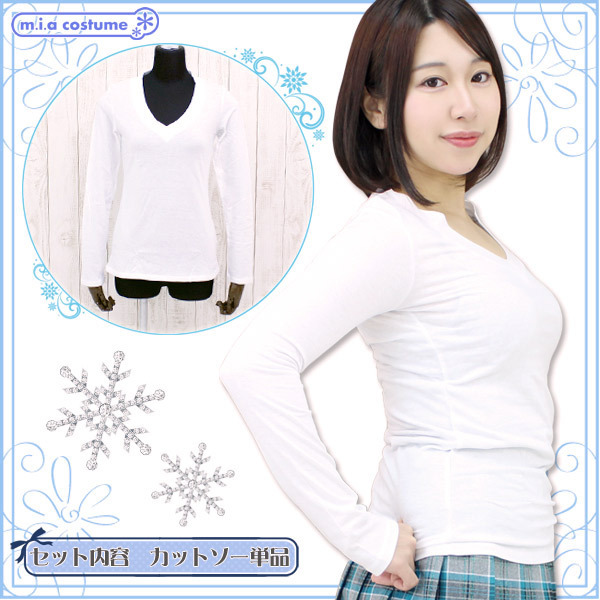 コットン生地100%仕様で着心地抜群!何枚持っていても欲しくなるV字ネックの長袖カットソー(白)。