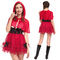 一味違った赤ずきんコスプレで周りと差をつける!ドット柄のチュールスカートと黒リボンで可愛く仕上げたコルセット風ミニスカワンピース。