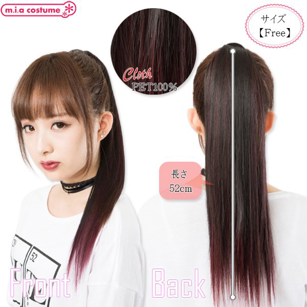 二つ使えばツインテールにもアレンジ可能!地毛に馴染みやすいサラサラの毛質だから違和感なくお使いいただけます♪発色の良いブラック×ワインレッドのカラーリングはライブなどのイベントにもおススメ。
