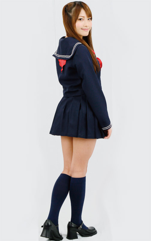 憧れの制服コスプレと言えばやっぱりコレ!白の2本ライン、赤リボンで仕上げた正統派のセーラー服コスチューム。