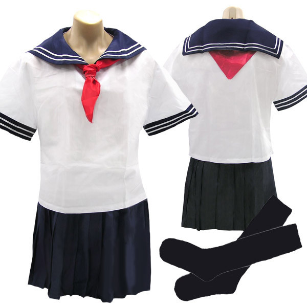 大きなサイズが無くて、仕方なく諦めていた夢を叶えちゃおう!ブラウス・リボン・スカートに紺の靴下まで一式揃った、男性用セーラー服コスチュームです。