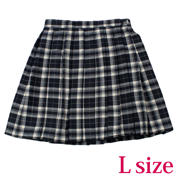 【830円★数量限定】ポケット付きのチェック柄プリーツスカート単品 濃紺×クリーム Lサイズ<お一人様1点限り>