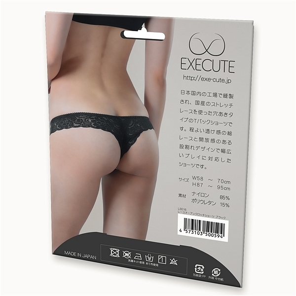 日本国内の工場で縫製され、国産のストレッチレースを使った穴あきタイプのTバックショーツです。