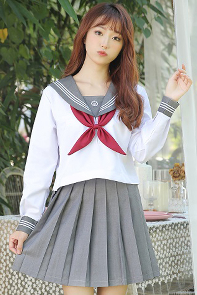 真っ赤なスクールリボンが映える清楚な長袖セーラー服。